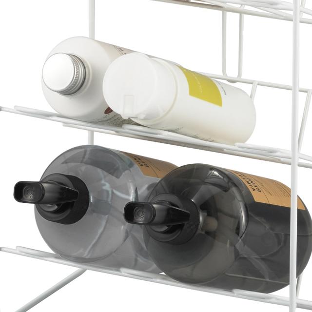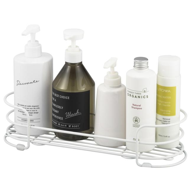 シンプルで錆びにくい「バススタイル」シリーズのボトルラックです。ポンプタイプのシャンプーなどをひとまとめに収納することができます。スッキリとしたデザインなので、他のアイテムとも合わせやすく清潔感ある空間にしてくれます。