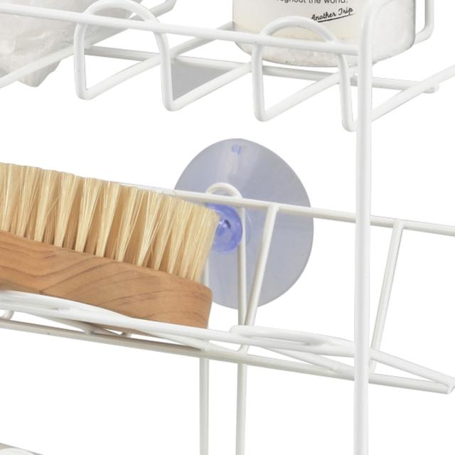 裏面には固定用の吸着盤が付いています。壁に固定することでラックしっかりと支えてくれます。また、吸着盤は劣化しにくい、耐久性に優れた素材を使用しているので安心してお使いいただけます。