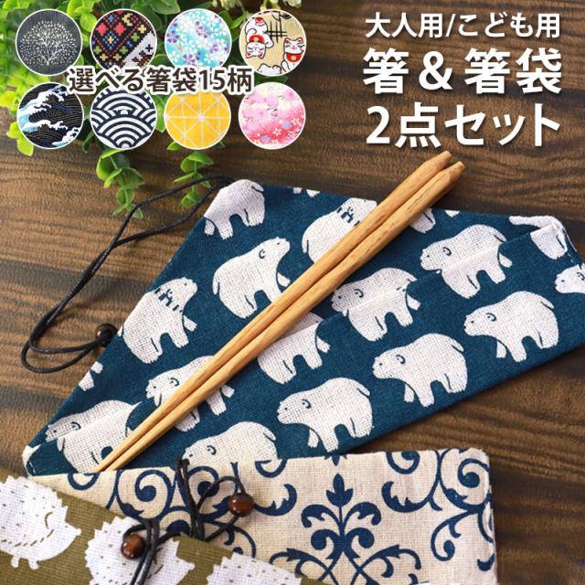 マイ箸 2点セット 選べる箸袋15デザイン 栗の木 お箸の長さも選べる 大人用 子供用 18cm 22.5cm 卒園記念品 粗品 ノベルティ 記念品 卒業記念品 プレゼント 木製 箸 おはし 携帯用 おしゃれ ギフト はし 男性 女性