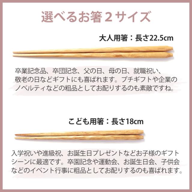 お箸のサイズは大人用(長さ22.5cm)と子供用(長さ18cm)をお選びください。