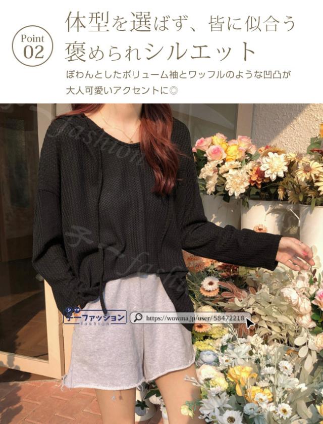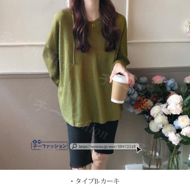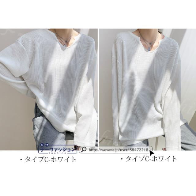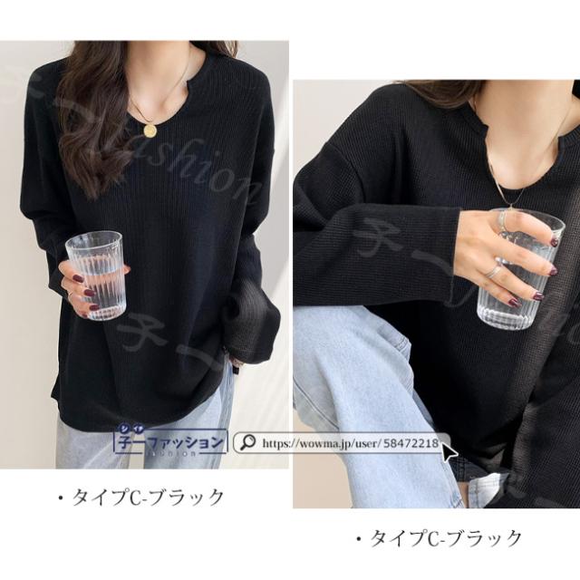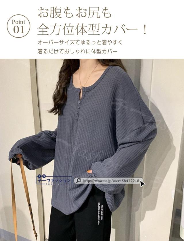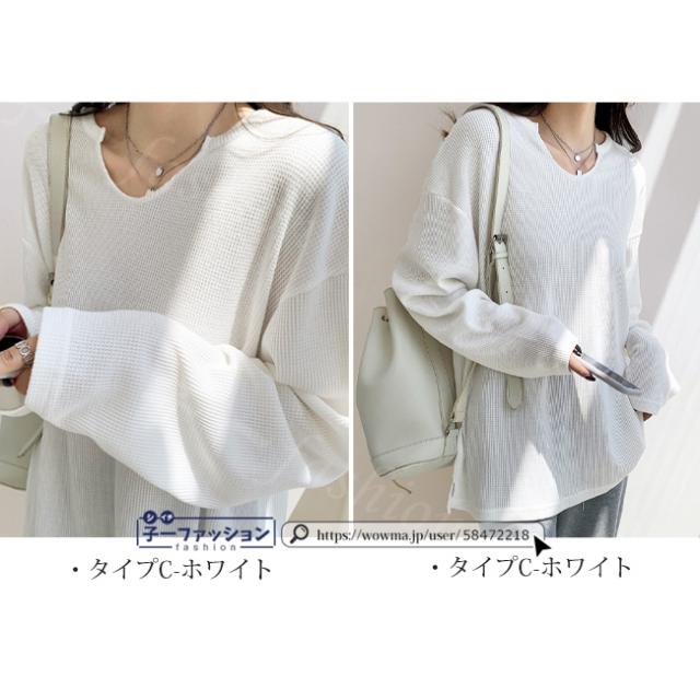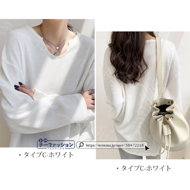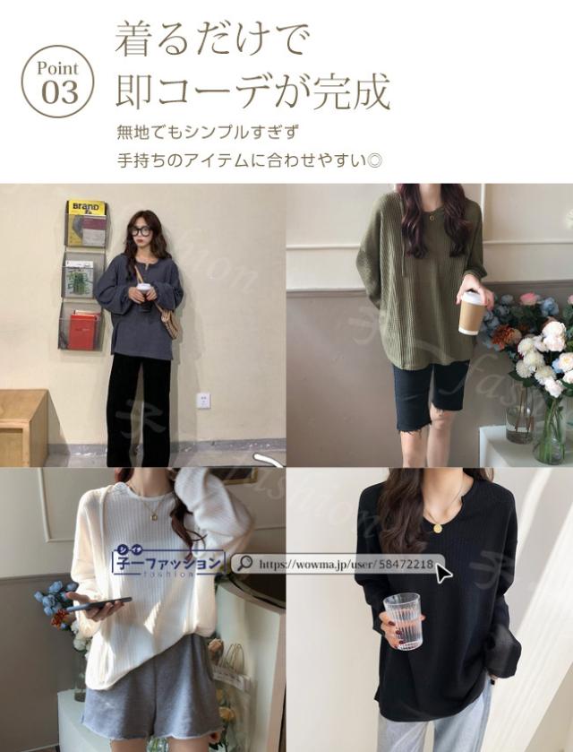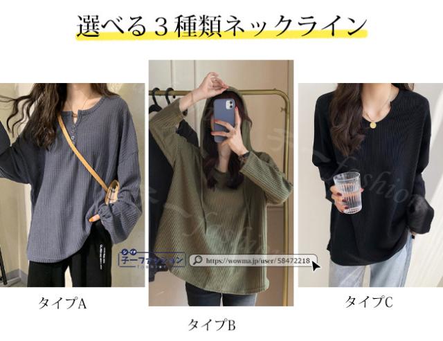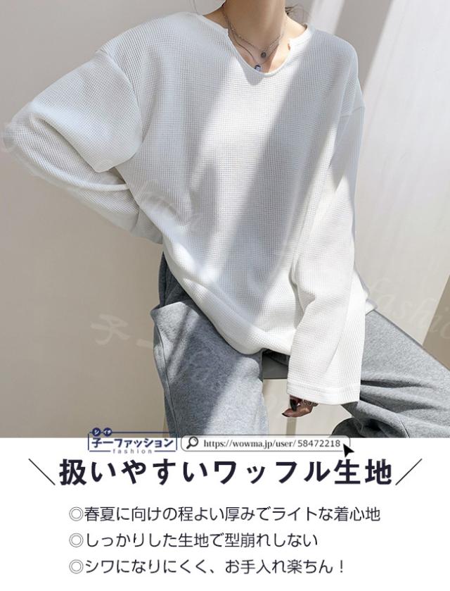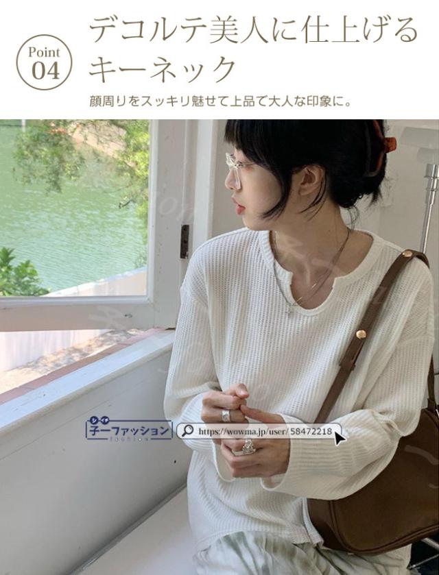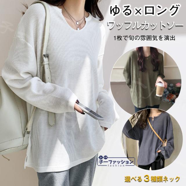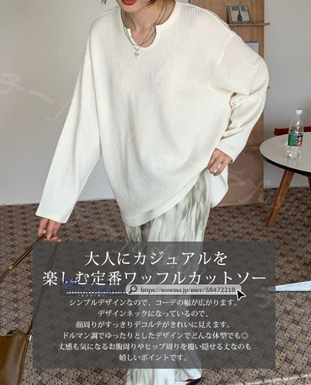 ワッフルカットソー 春新作 カットソー 選べる3種類ネック ラウンドネック キーネック 春夏 Tシャツ トップス 薄手 大きいサイズ ドルマンスリーブ プルオーバー ゆったり 体系カバー 大人 パステル 秋冬 バレンタイン