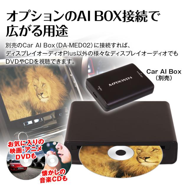別売のCar AI Box(DA-MED02)に接続すれば、ディスプレーオーディオPlus以外の様々なディスプレイオーディオでもDVDやCDを視聴できます。
