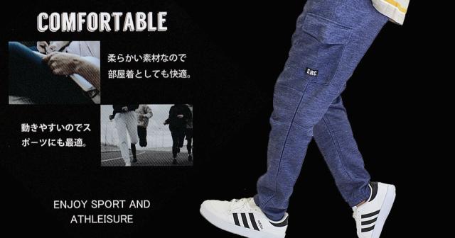 ■ウエストゴムで楽ちん(ずり落ち防止の紐付き)、裾絞りのジョガーパンツスタイルは運動着として適したスタイル、活動しやすく足首がスッキリしてスニーカーが綺麗に映える事も魅力です。