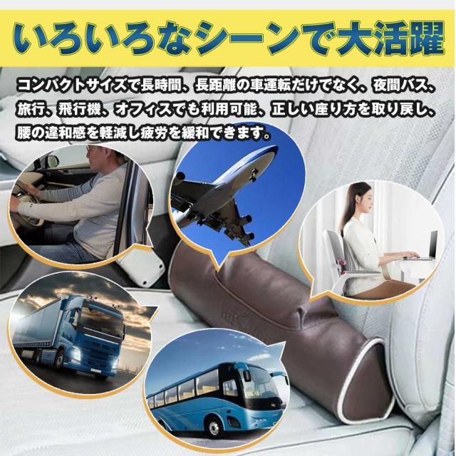 ●コンパクトサイズで長時間、長距離の車運転だけでなく、夜間バス、旅行、飛行機、オフィスでも利用可能、正しい座り方を取り戻し、腰の違和感を軽減し疲労を緩和できます。