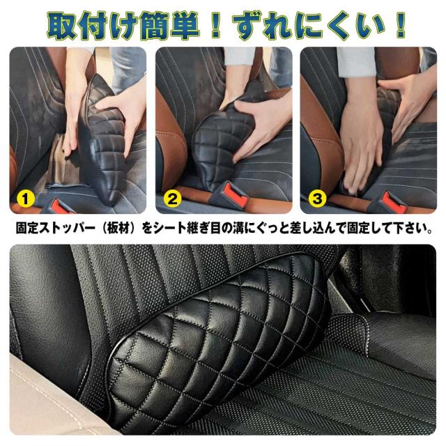 ●車内インテリアにこだわったデザイン、同じ腰対策クッションでも当店商品は空間利用に優れています。手間いらずで差し込むだけ簡単設置し、ずれにくいです。