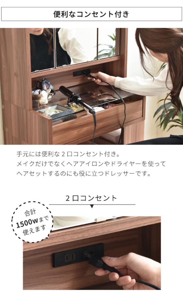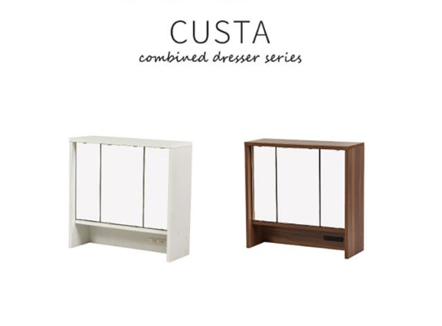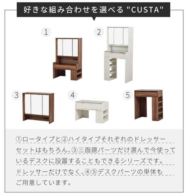 卓上ドレッサー CUSTA FDR-0002 2色対応 幅60cm 卓上ミラー ミラーパーツ 卓上三面鏡 鏡 三面鏡 コンセント付き 収納付き 可動棚 鏡台 化粧台 ブラウン ホワイト おしゃれ