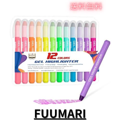 Shuttle Art 蛍光ペン 明るいカラー 12色セット 固形蛍光マーカー 蛍光クレヨン 鮮やか 速乾 裏移りしにくい 繰り出し式 ゲルインク 透明