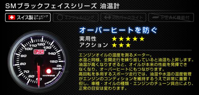油温計 オートゲージ メーター径 52mm AUTOGAUGE SMシリーズ 黒 ブラック 車 メーター スイス製 ステップモーター スモークフェイス ワーニング機能 追加メーター 後付け ホワイトLED WEIMALL