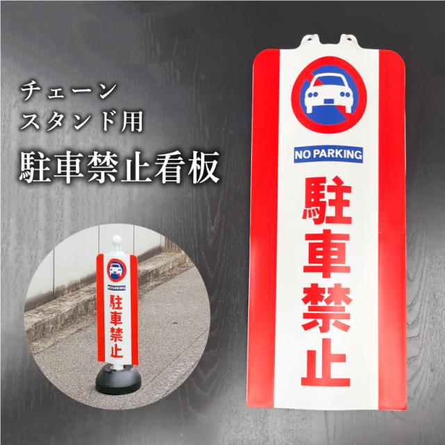 チェーンスタンドに引っ掛けるだけで駐車禁止看板