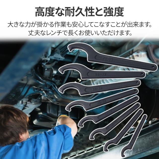 フックレンチ レンチ レンチセット 汎用 8本セット フックスパナ スパナ 車高調レンチ 自転車 バイク 車高調 レンチ ブラック 車高調整 車 バイク メンテナンス 整備 修理 交換 点検