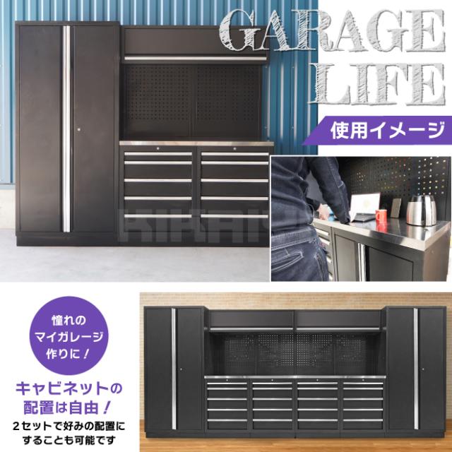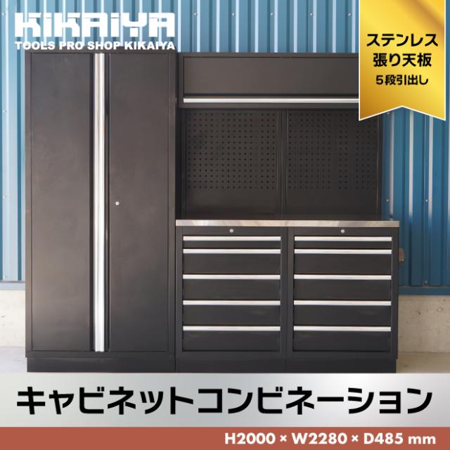 ガレージ キャビネット コンビネーション H2000×W2280×D485mm 作業台 ステンレス天板 ロッカー メッシュボード スチール