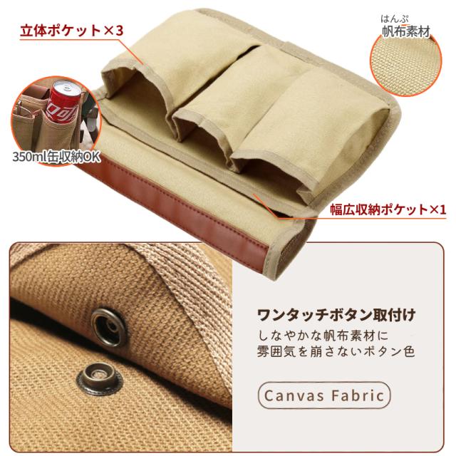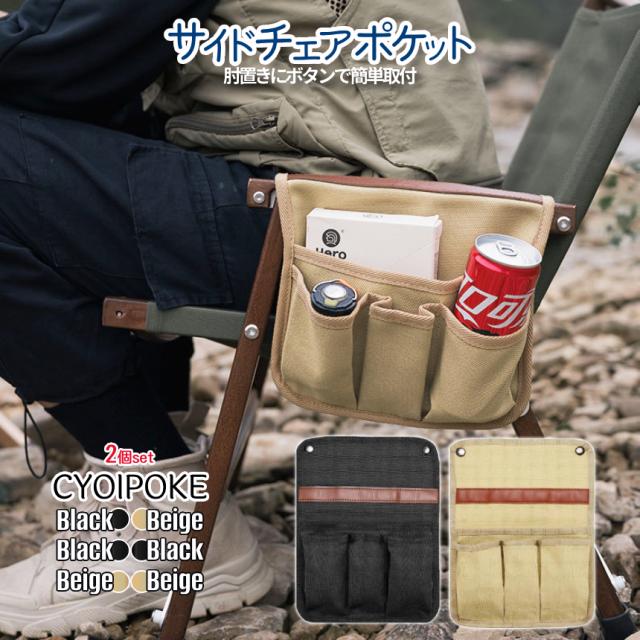 アウトドアチェア サイドポケット 2個セット ちょいポケ 横 サイド ポケット 収納 アームレスト 簡単 装着 ボタン キャンバス 帆布 耐水 頑丈 アウトドア キャンプ バーベキュー キャンプギア イス チェア 歩行器 車椅子 ポッケ ブラック ベージュ グレー 2-CYOIPOKE 送料無料