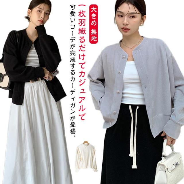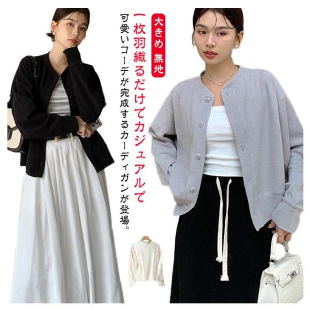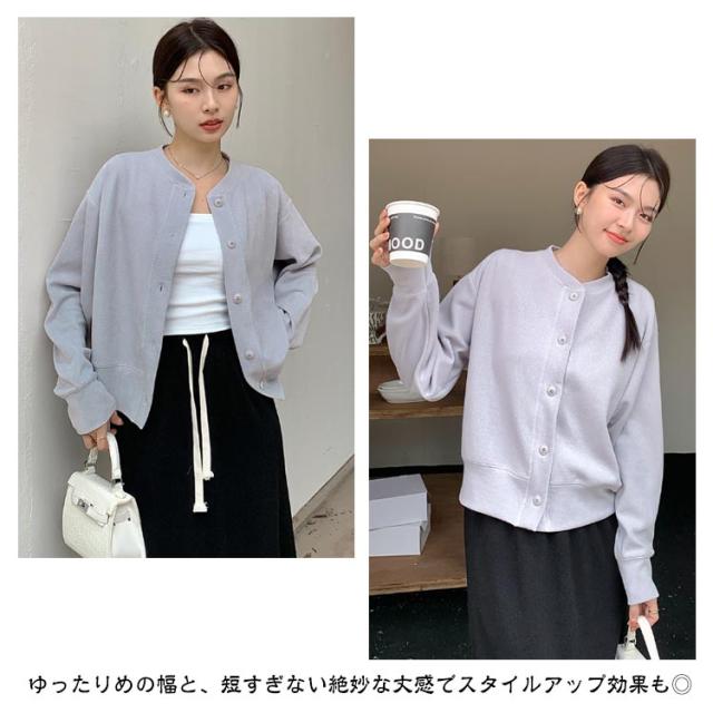 カーディガン 体型カバー カジュアル レディース スウェット クルーネック ゆったり トレーナー ルームウエア コート 送料無料 大きめ 羽織り スウェットカーデ シンプル トップス 送料無料 無地 オフィス きれいめ 春