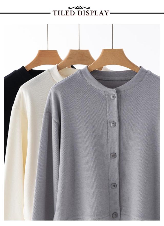 | ふんわり柔らかい肌触りが特徴のトレーナー生地カーディガンが登場。 襟元はクルーネック、袖、裾口にリブ編みを採用しもたつきすぎず、スッキリとしたシルエットに。 大きめボタンが着こなしのアクセントに。 柔らかく優しい肌触りで着心地抜群◎ 中にセーターやスウェットと組み合わせて使えばより暖かさがUP♪ 気温が安定しない時期や冷房対策などにも、ロングシーズン大活躍。 | |