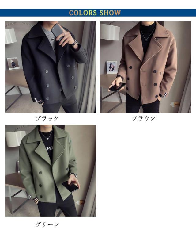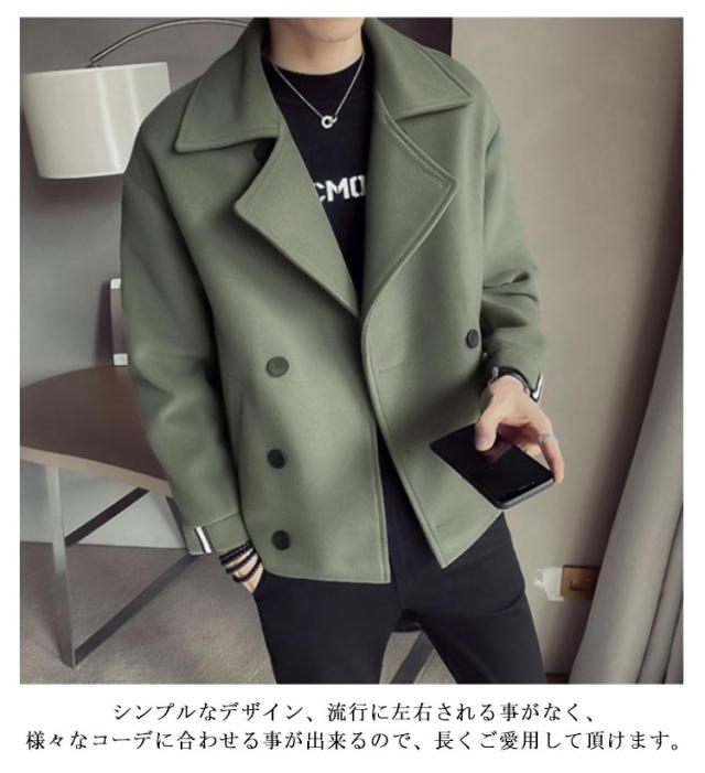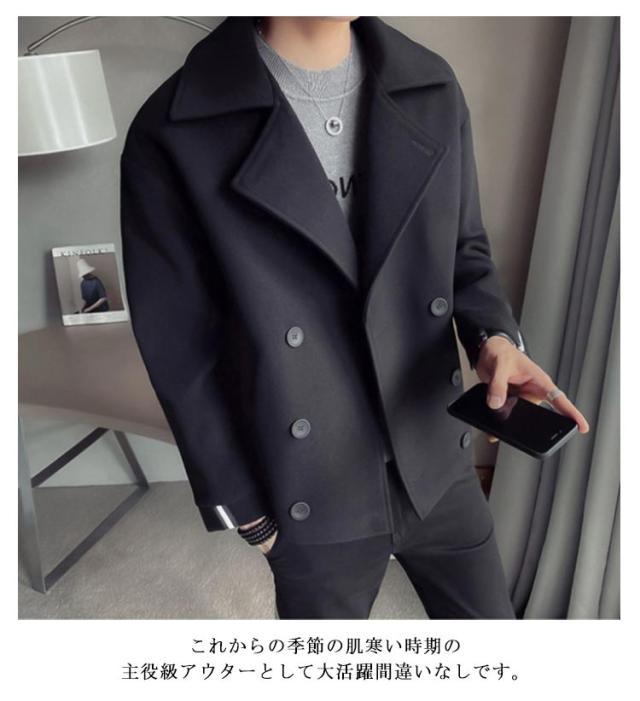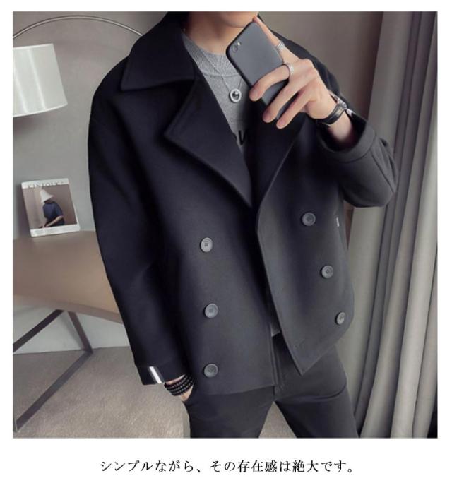 アウター ピーコート シンプル ショートコート 春 通学 秋冬 ピーコート メルトン 防寒 おしゃれ メンズ 紳士服 無地 通勤 旅行 ストリート系 キレカジ系 大きいサイズ カジュアル ダブルボタン 体型カバー 暖かい 通勤