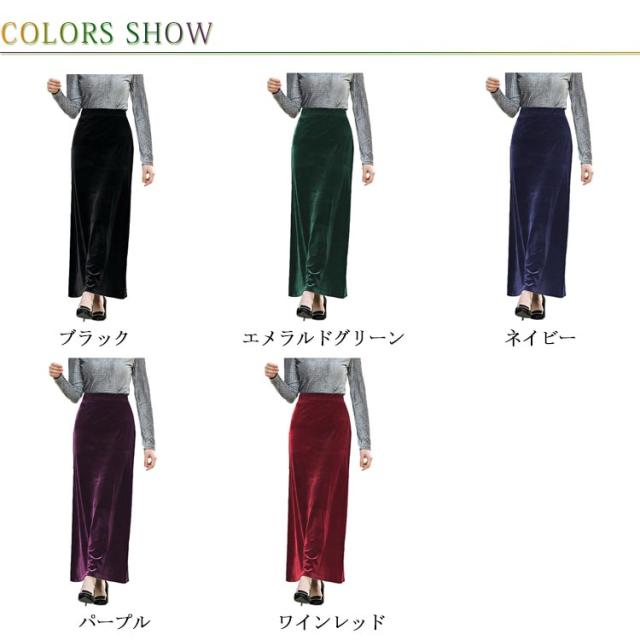 ロングスカート マキシスカート ベロア スカート ベルベット レディース フレアスカート エレガント 優雅 ウェストゴム 通勤 お出かけ 二次会 フォーマル