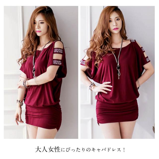 ドルマンシルエットで腕カバー力◎キャバドレス ワンピース セクシー タイト ドレス 半袖 夏