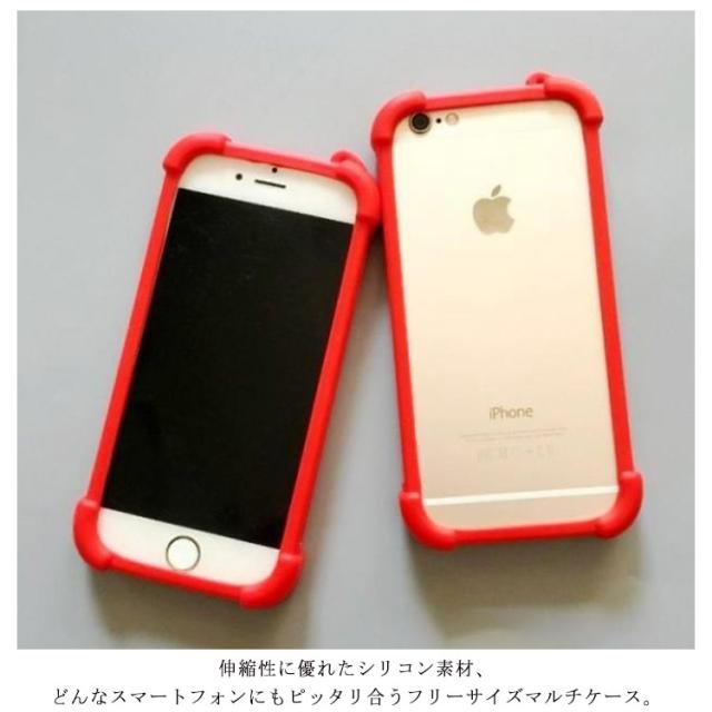 | よく伸びるからピッタリフィット。 高品質なシリコン素材で多種類のスマートフォンに対応出来るマルチバンパーケース。 伸縮性に優れたシリコン素材、どんなスマートフォンにもピッタリ合うフリーサイズマルチケース。 スマホフレーム全周しっかり保護する伸縮バンパーケース、お手持ちのケースと組み合せて、2重構造でスマホをしっかり保護するのも◎ コーナー強化設計!四隅は厚みのある突起デザイン、カメラや液晶画面より高く、擦り傷からカードするのはもちろん、衝撃吸収力抜群で、落下によるダメージからもスマホをまもってくれます。 ケースのままボタン操作、充電コードやイヤホン装着もできるから大変便利。 | |