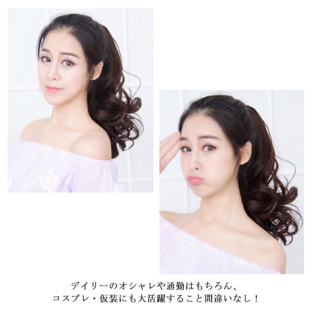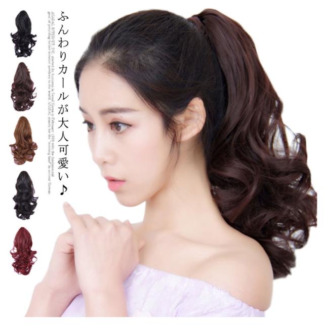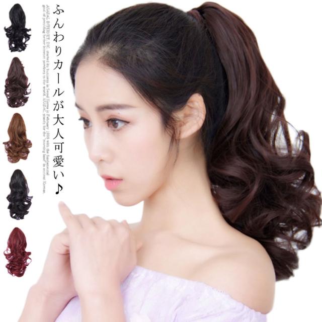 ポニーテール ウィッグ クリップ ワンタッチ ウェーブ ゆるかわ カール セミロング ポイントウィッグ エクステ かつら 部分ウィッグ つけ毛 巻き髪 可愛い 結婚式 コスプレ