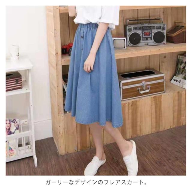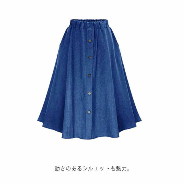 デニムスカート レディース フレアスカート デニム調 ロングスカート ミディアム丈 スカート ミモレ丈 膝丈 体型カバー aライン ハイウエスト 春 夏 送料無料 大人 ウエストゴム 20代 30代 40代 OL