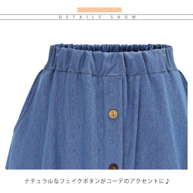 | ミディアム丈 デニム フレアスカート ガーリーなデザインのフレアスカート。 デニムの風合いが落ち着いた大人女子にピッタリ! 動きのあるシルエットも魅力。 スタイルアップ効果抜群のアイテムです。 ナチュラルなフェイクボタンがコーデのアクセントに♪ | |
