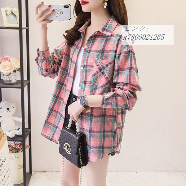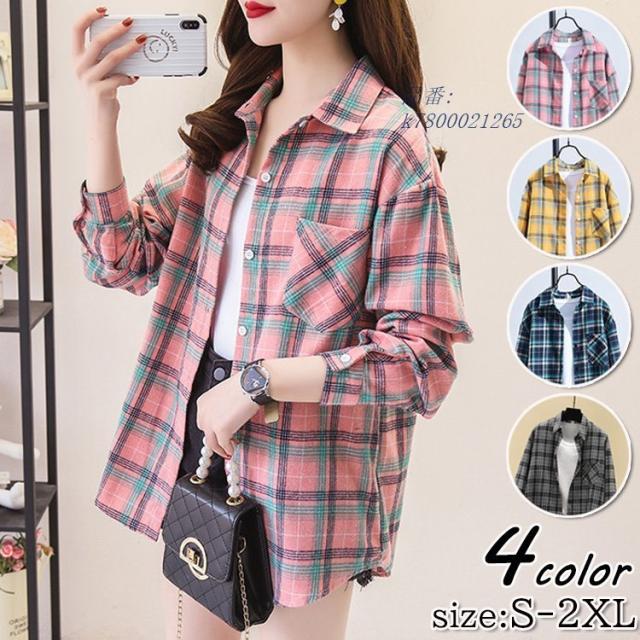 ブラウス レディース 40代 秋新作 長袖ブラウス チェック柄シャツ 上品 綿 30代 オーバー カジュアル韓国風シャツ 50代 ゆったり オシャレ大人可愛い