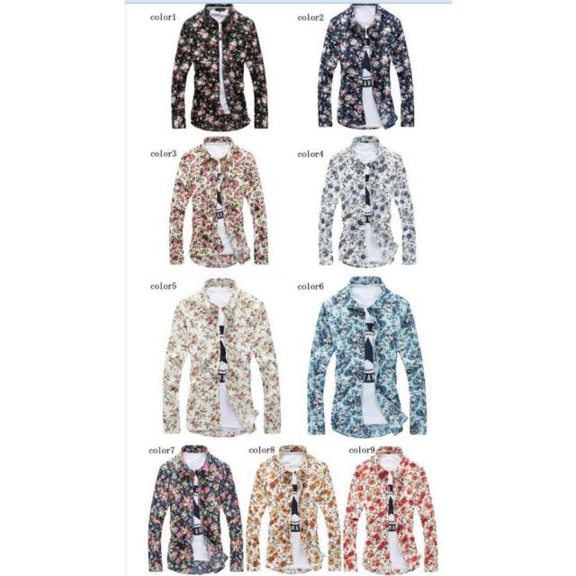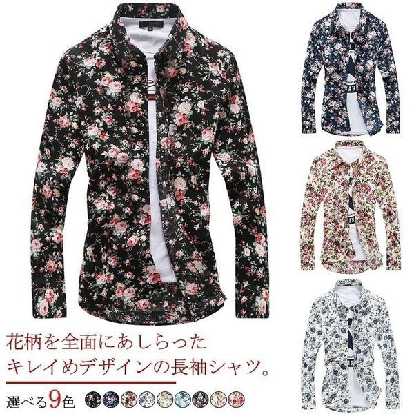 花柄シャツメンズシャツトップス長袖スリムシャツプリントシャツ花柄カジュアルキレイめレジャー春夏メンズファッション