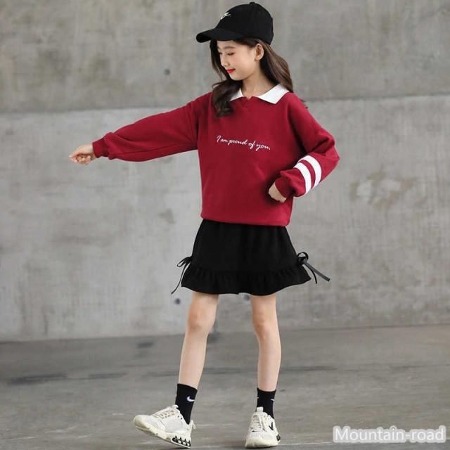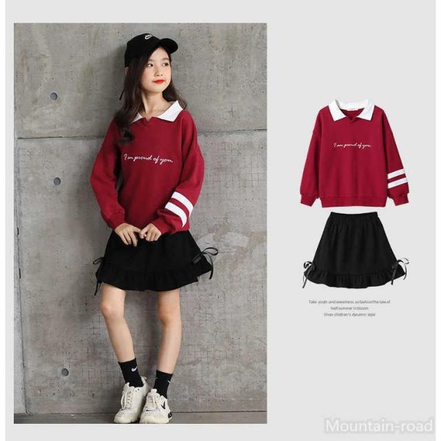 子供服 長袖 Tシャツ スカート セットアップ キッズ テレコ 女の子 秋春 おしゃれ 安い 韓国風 可愛い おしゃれ110 120 130 140 150 160cm 二点セット