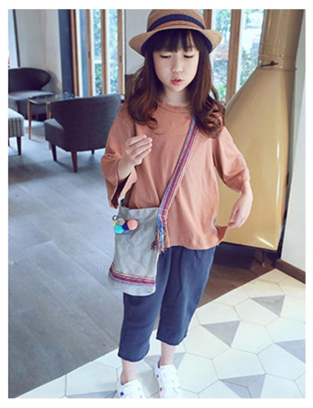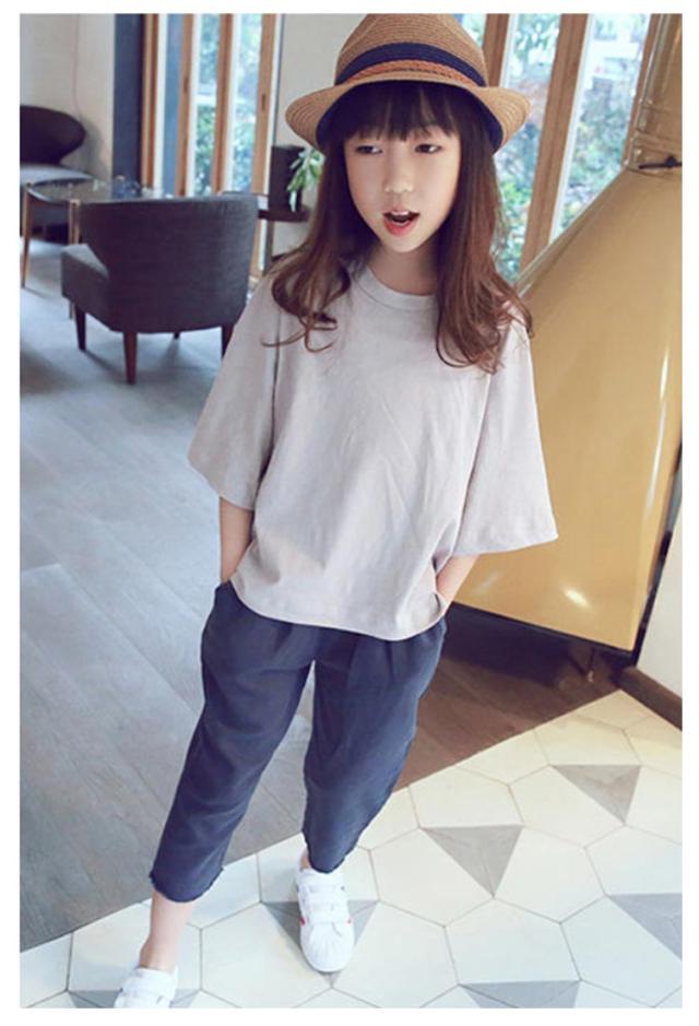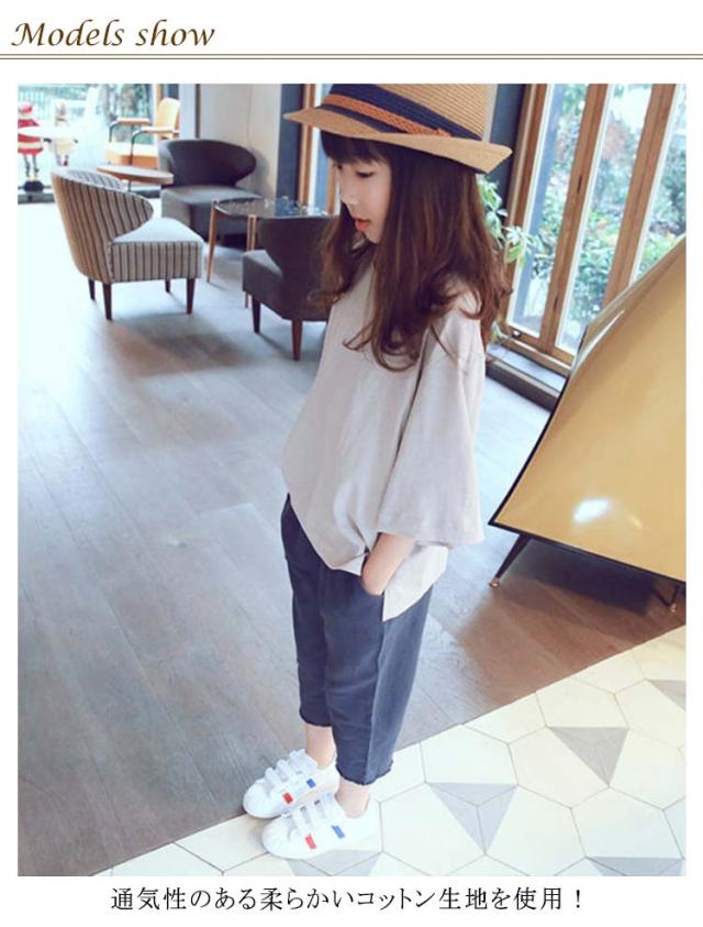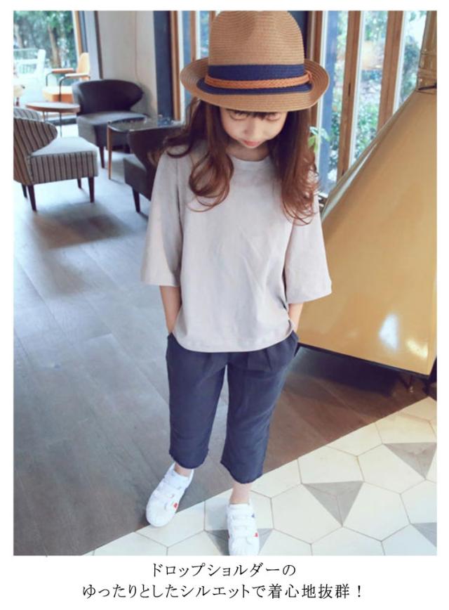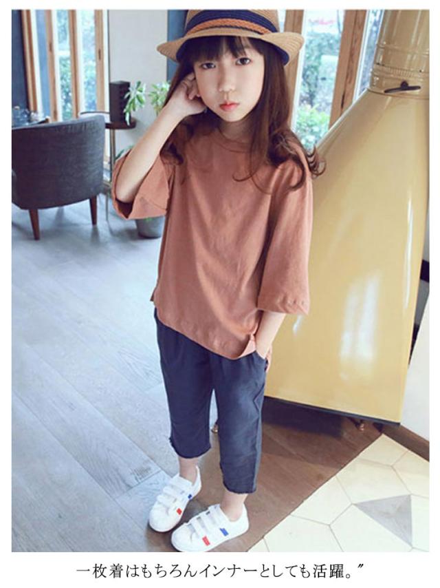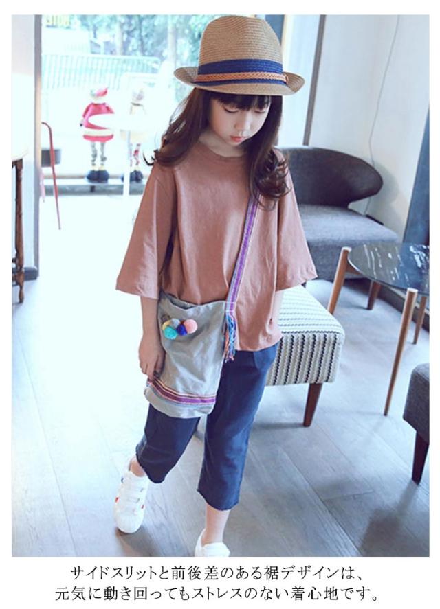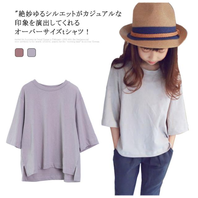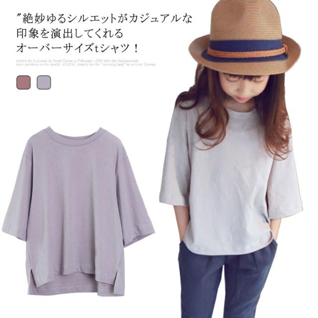 tシャツ 女の子 七分袖 プルオーバー Tシャツ トップス オーバーサイズ ガールズ 子供服 キッズ服 コットン 綿 Uネック スリット入り 体型カバー おそろい リラックス ゆったり