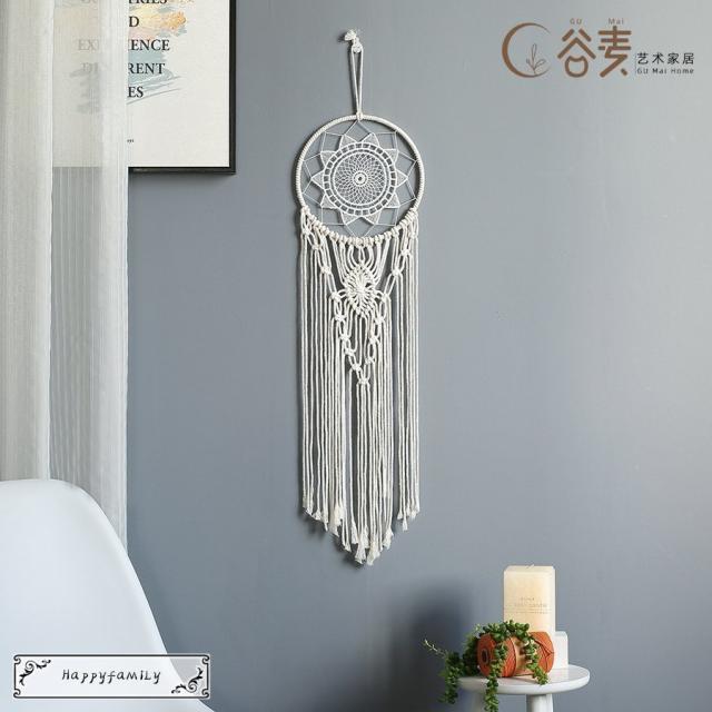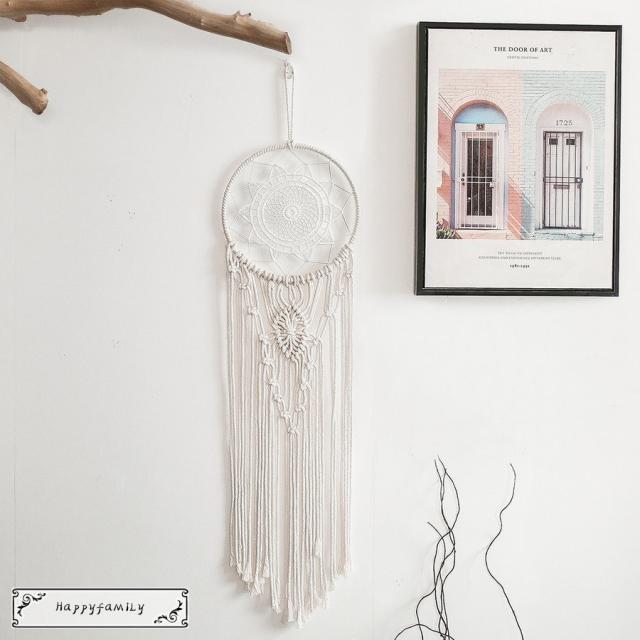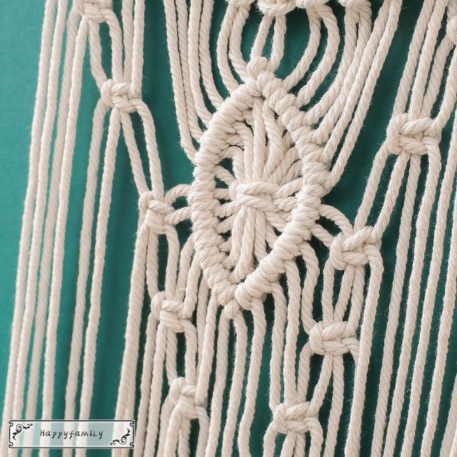| サイズについての説明 | 幾何学模様で作るマクラメ編みがムーン型でデザインされました。 フリンジも可愛く、壁に掛けるだけで手軽におしゃれインテリアを演出できます。 ハワイアンや西海岸などサーフ系はもちろん、 北欧など優しく自然な感じをお好みの方にもオススメ。 リビングや玄関、ベッドルームなど、空いたスペースに飾れば、 さりげなくインテリアのおしゃれ度をアップできます。 サイズ:全長約83cm、編み部分約20cm |