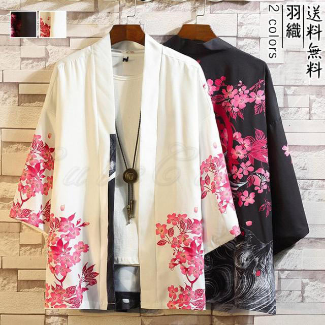 羽織 メンズ アウター 花柄 鶴柄 7分袖 浴衣風 トップス カーディガン 薄手 はおり ショート丈 ゆったり 涼しい 春夏秋 おしゃれ