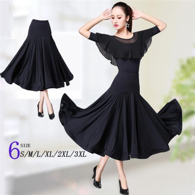 ダンス用スカート 社交ダンス ウェア ドレス タンゴ 無地 ダンス服 大きく広がる 黒 練習着 モダン 競技用 ステージ衣装 S~3XL スカートだけを売る