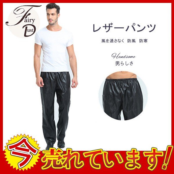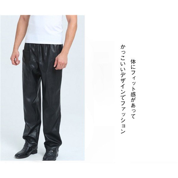 レザーパンツ メンズ ロングパンツ PU 大人気 新作 防寒 フェイクレザー バイクパンツ 撥水 ウエストゴム 春