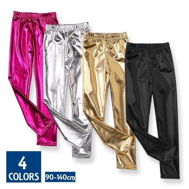 メタリックパンツ キッズ 子供 ボトムス タイト ロング丈 派手 ステージ衣装 レギンス かっこいい カジュアル クール