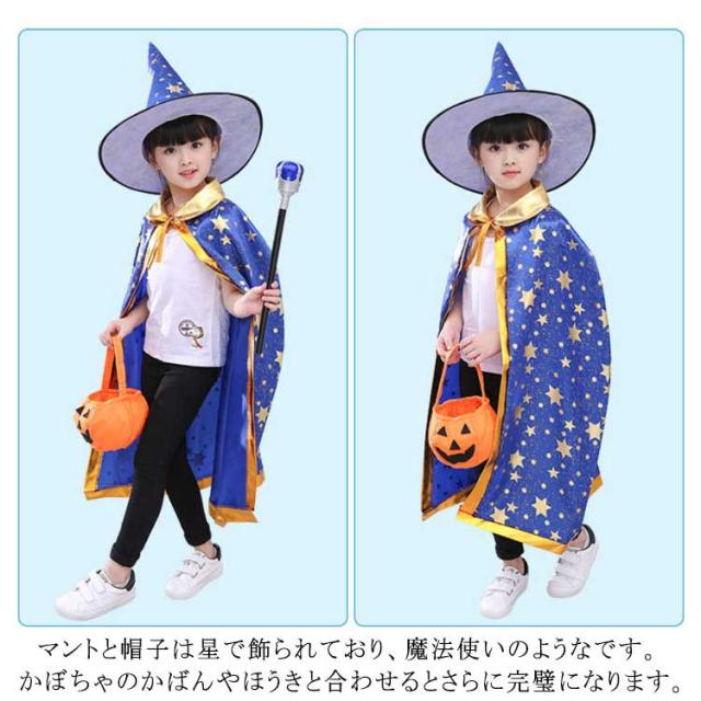 | (デザイン)マントと帽子は星で飾られており、魔法使いのようなです。 かぼちゃのかばんやほうきと合わせるとさらに完璧になります。 (適用場合)ハロウィンやこどもの日などパーティーや、忘年会にぴったりです。 ハロウィン、フェスティバル、演芸会、仮装パーティー、クリスマスパーティー、忘年会、文化祭、舞踏会など、様々な場面で活躍できますように。 (雰囲気満点)ハロウィーンホームパーティーやイベントに大活躍しています。ハロウィーの雰囲気を高めます。 (急速変装)ハロウィンの雰囲気あふれるコスチュームで、すぐに変装できます。子供もフェスティバルで楽しく遊ぶことができます。 (参考サイズ)マント丈約90cm、男女兼用で、男の子と女の子が似合うタイプです。フリーサイズなので、100〜160cmの子供でも着用できます。 | |