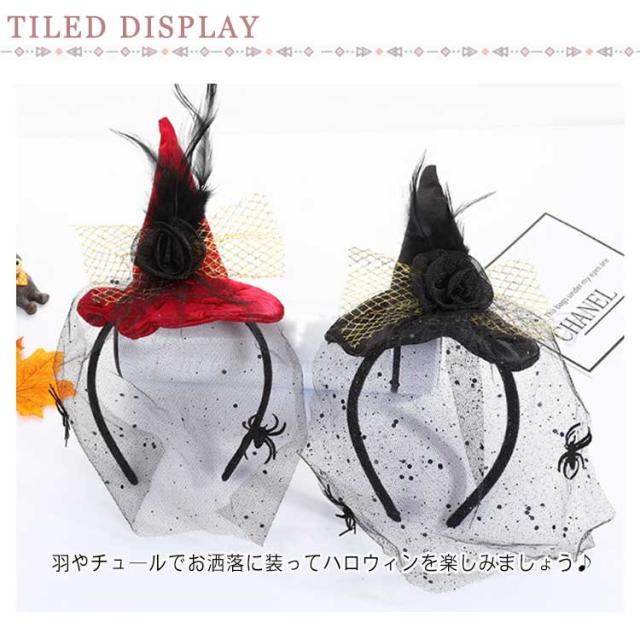 送料無料 ウィッチハットカチューシャ コスプレ ハロウィン 仮装 変装 魔女の帽子 ヘアアクセサリー 髪飾り カチューシャ イベント お揃い パーティー 女性 大人 コスチューム 可愛い レッド ブラック