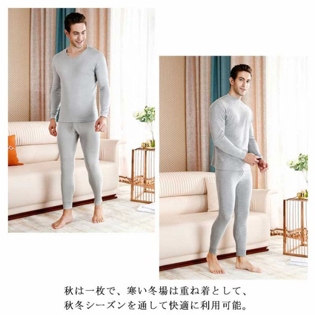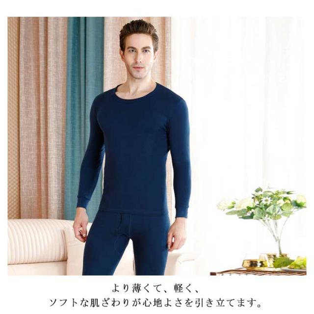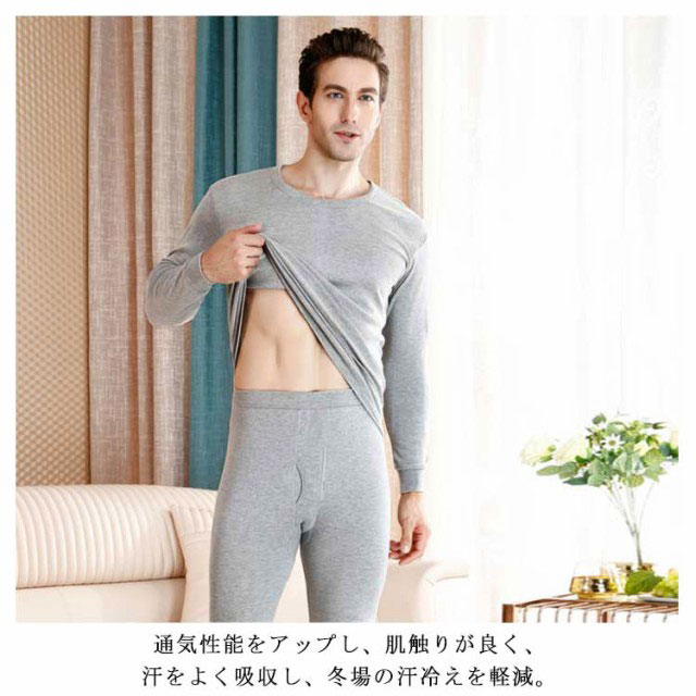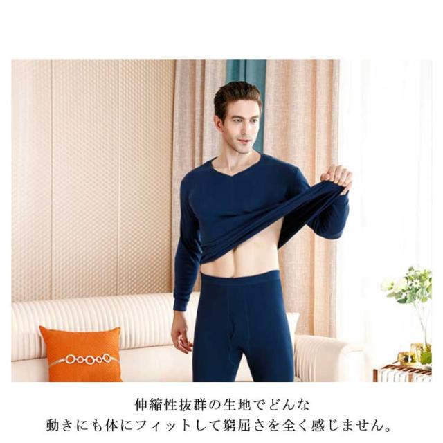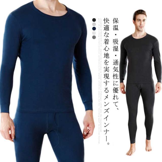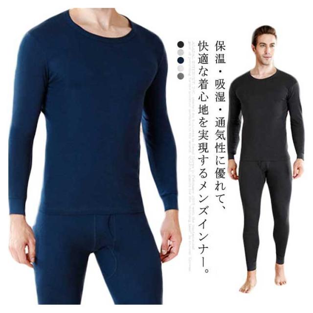 上下セット インナー メンズ 綿80% アンダーシャツ M-3XL 吸湿 通気性 防寒 インナーシャツ パンツ 下着 全5色 秋冬用 長袖 丸首 あったか 保温インナー 暖かい 肌着 保温 ズボン