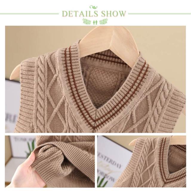 | 全5サイズ・全3色・子供スクールベスト 秋冬の大人気の子供用ニットベストです。 柔らかく、温かなコットン素材が楽ちんな着心地を叶えてくれます。 軽くて保温性抜群のコットン素材を使用。 ケーブル編みと配色ラインをあしらったデザインがポイント。 家庭洗いも可能なので、お手入れが非常に簡単です。 シャツやカットソーなどシンプルなアイテムにレイヤード シンプルなインナーにパッと合わせるだけでかわいい印象に。 コーデの手間を省き、セットでお洒落を楽しめるのはもちろん! 通園通学、お出かけにピッタリ一枚です。 | |