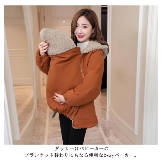 2way マタニティ パーカー ママコート ダッカー付き マタニティウェア 授乳服 抱っこ ママコート 抱っこ紐パーカー フード付き 裏起毛 あったか 産前 産後 臨月 防寒 秋冬 可愛い 多機能 授乳服 妊婦 妊娠