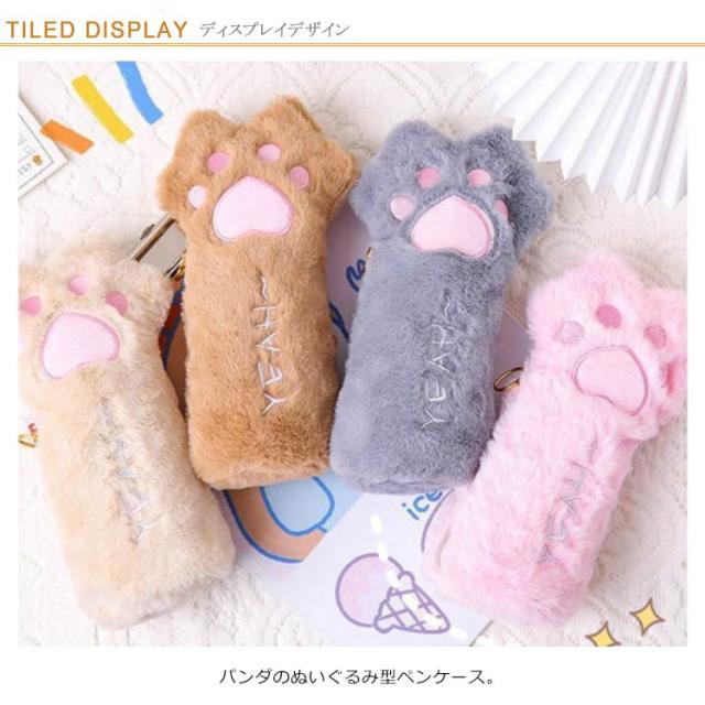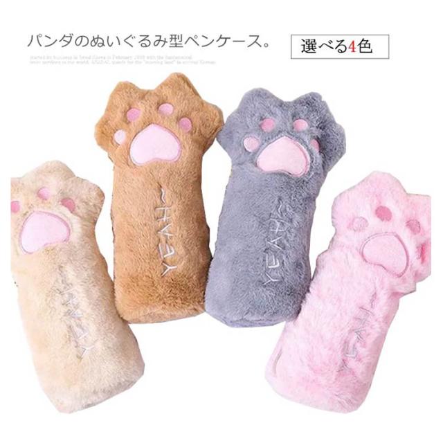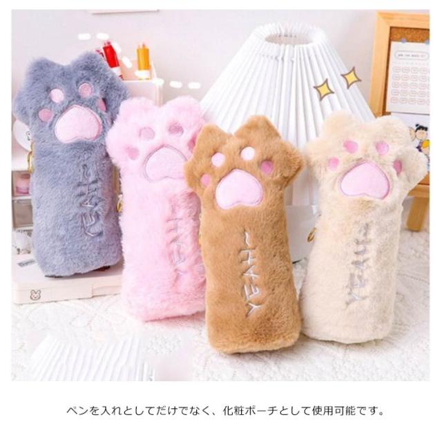 ペンケース 肉球 ぬいぐるみ型 ペンポーチ 大容量 ネコの手 ぬいぐるみポーチ ふでばこ ペン入れ ふで箱 ふでばこ かわいい ふわふわ もふもふ フェイクファー キャット