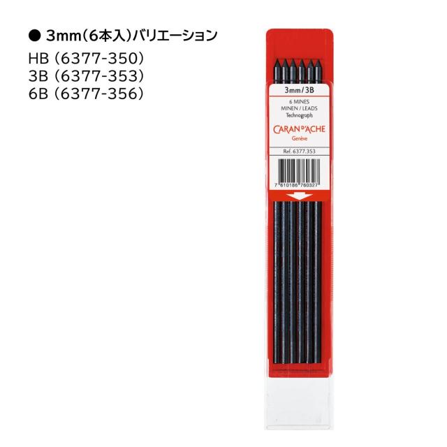 カランダッシュ フィックスペンシル用替え芯 3.0mm(6本入) HB(6377-350)/3B(6377-353)/6B(6377-356) (ネコポス可)