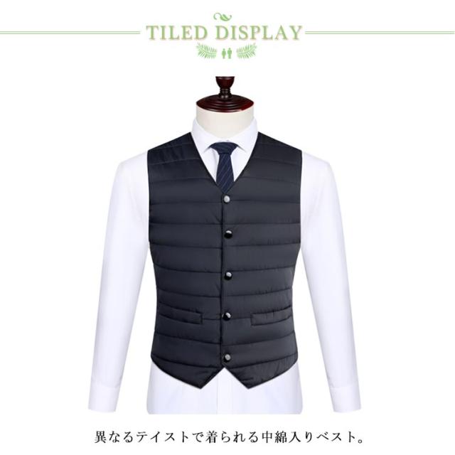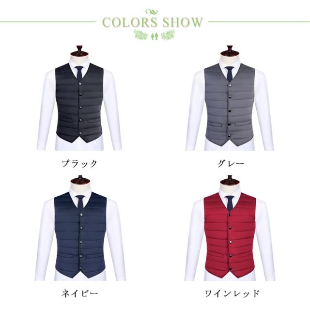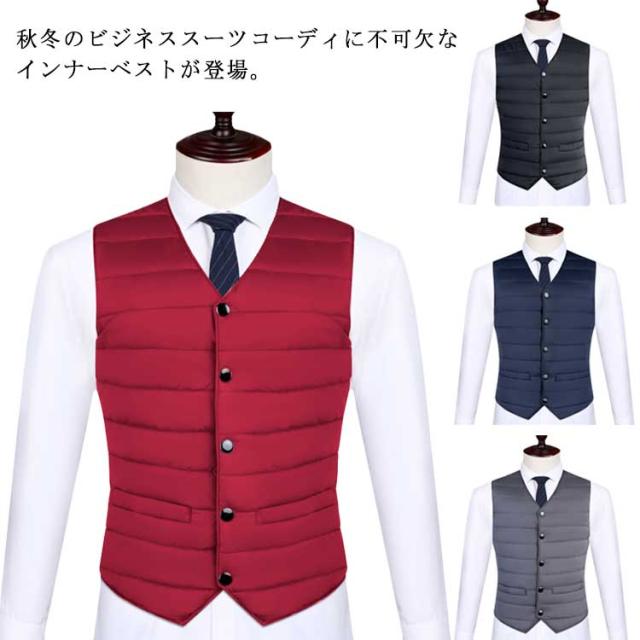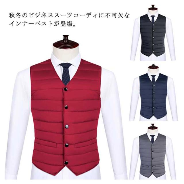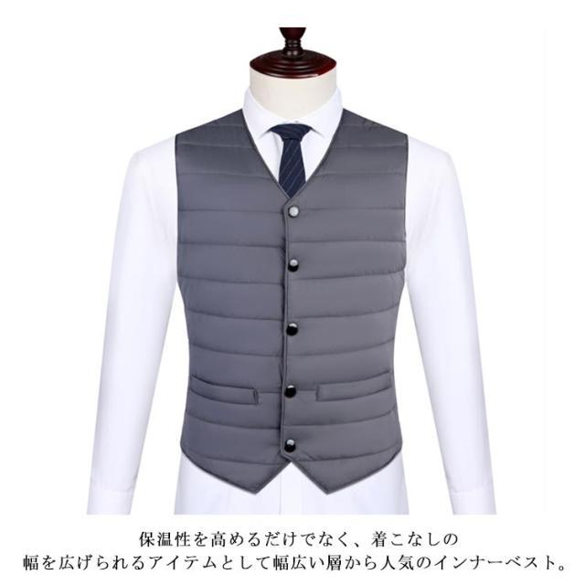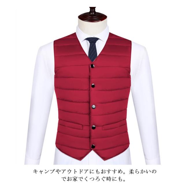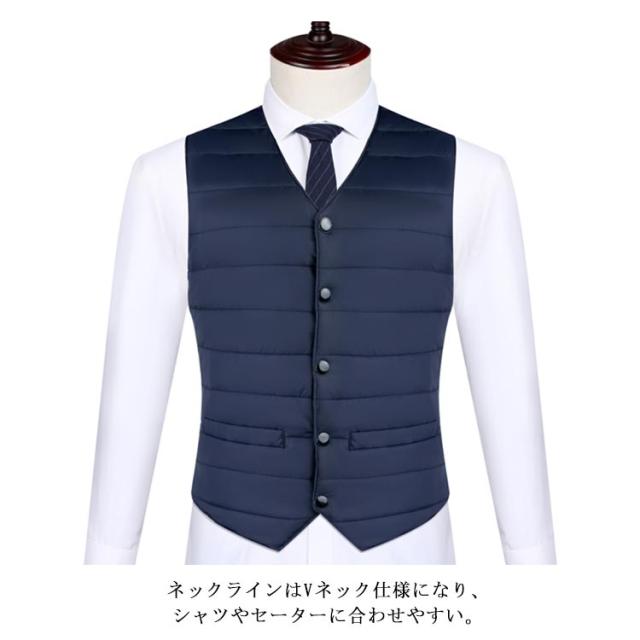 ダウンベスト メンズ インナーベスト インナーダウン スーツベスト 中綿入り 軽量 防寒 Vネック ボタン 高級 ビジネス フォーマル スタンドカラー ライト あったかグッズ 秋 冬 早春 ルームウエア リラックスウェア チョッキ