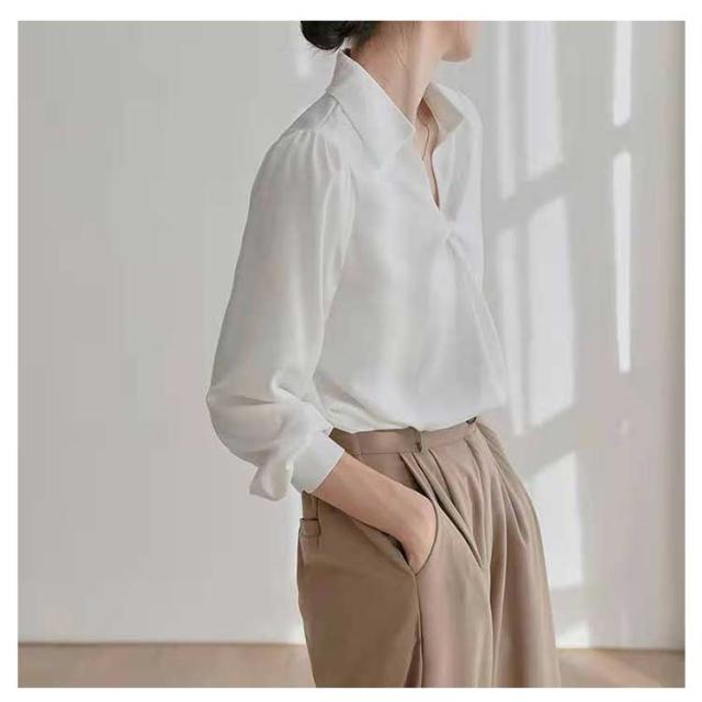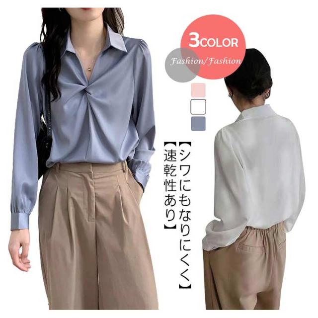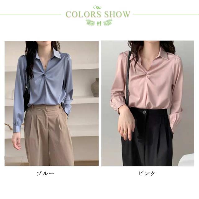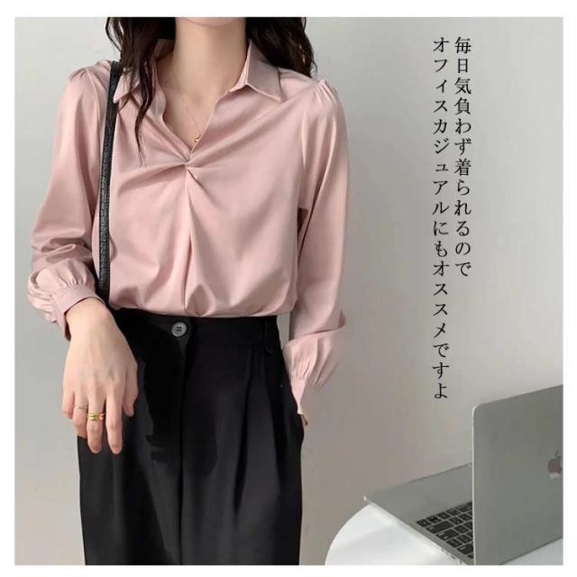 ブラウス シフォン トップス タック シフォンブラウス レディース タックブラウス ジャケット インナー 長袖ブラウス バルーン袖 S M L LL 長袖 秋 冬 フォーマル オフィス 体型カバー シンプル フォーマル 送料無料