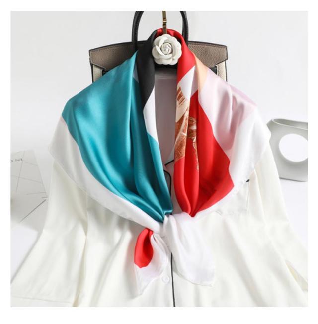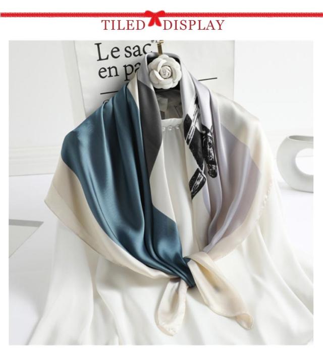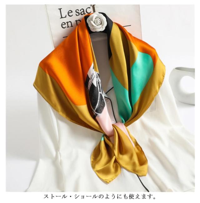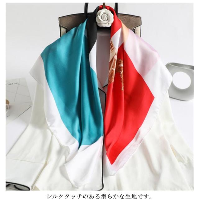 大判 正方形 スカーフ 90cm 総柄 柄 レディース ストール シルク調 ハンダナスカーフ ヘアクセサリー バッグチャーム バッグスカーフ 母の日ギフト 母の日プレゼント