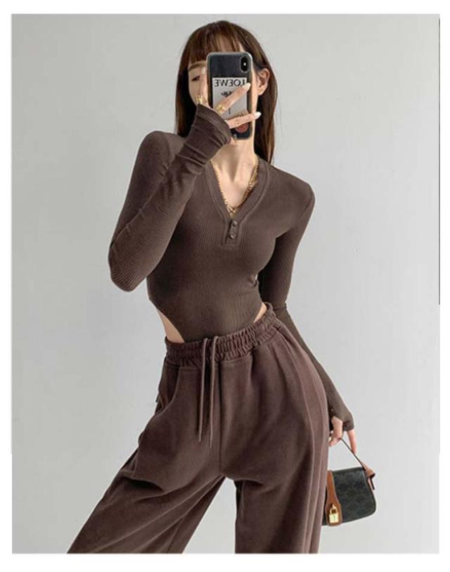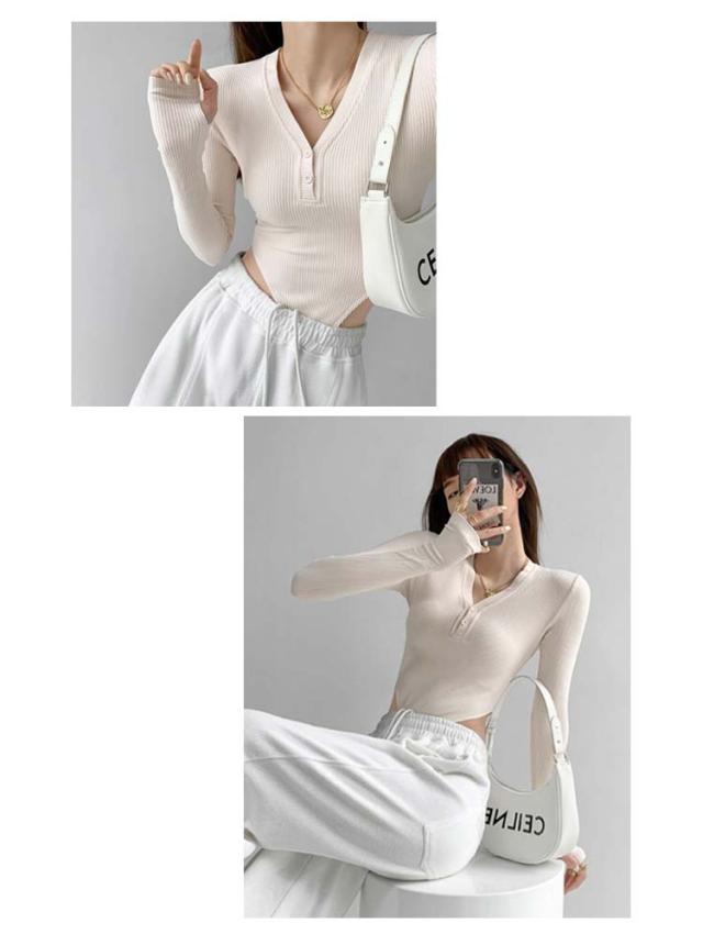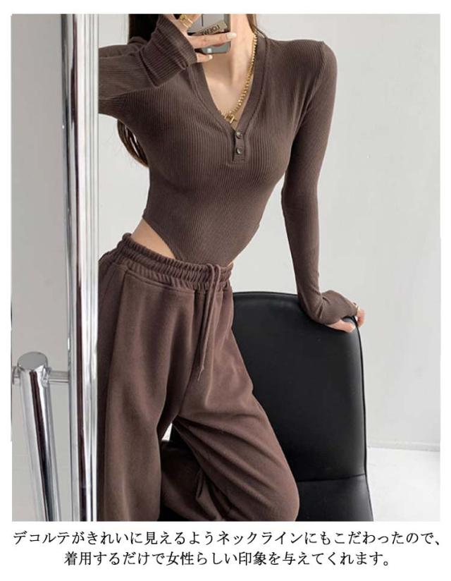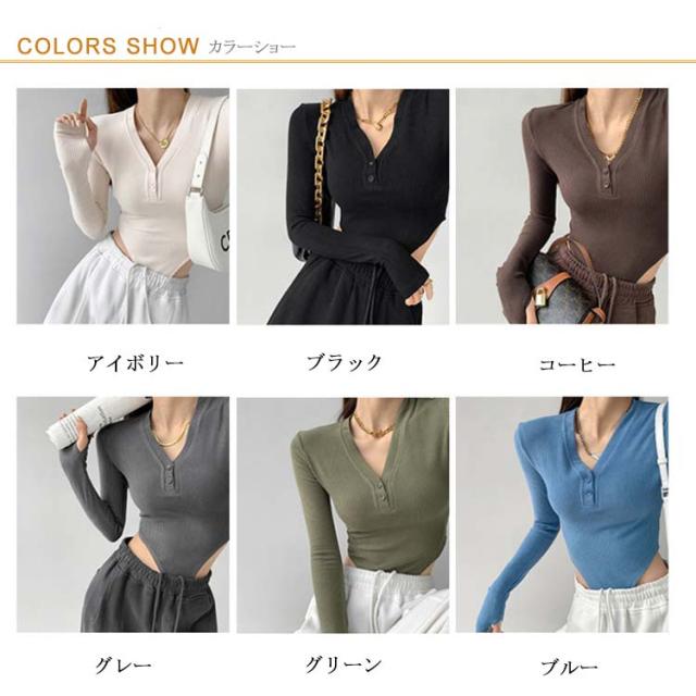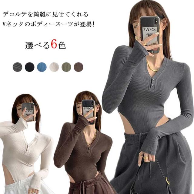 ボディースーツ レディース ボディブリファ 長袖 カットソー Vネック オールインワン つなぎ ツナギ レオタード タイト 肌着 インナー 下着 Tシャツ ストレッチ おしゃれ 細身 無地 シンプル 秋 春 冬 セクシー 送料無料