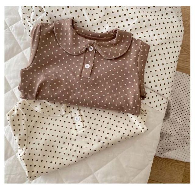カットソー 女の子 長袖 Tシャツ コットン 綿 ブラウス 丸襟 ラウンドカラー トップス ドット柄 子供服 こども服 子ども服 ジュニア キッズ ベビー服 フリル襟 カジュアル かわいい おしゃれ 新作 春服 秋服 冬服 80cm 90cm 100cm 110cm 120cm 送料無料