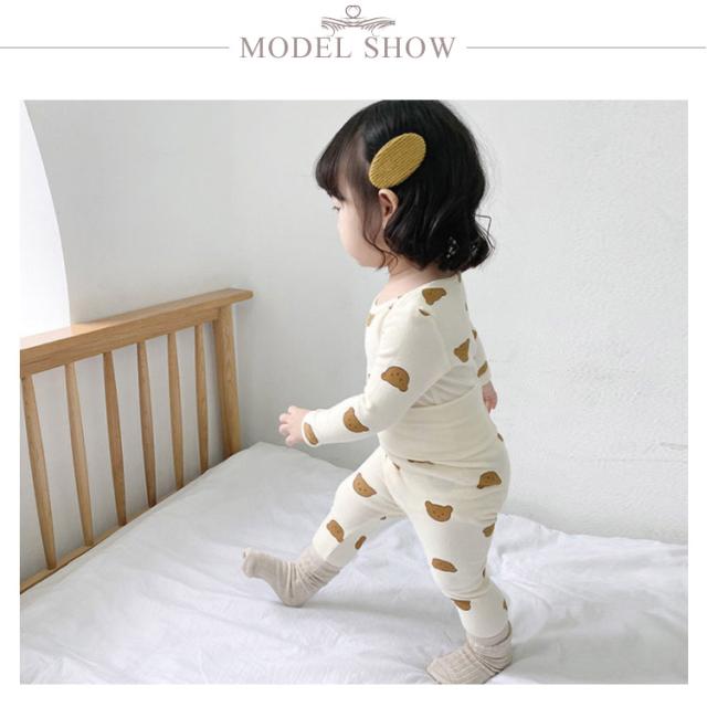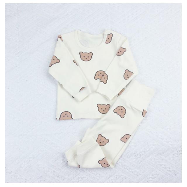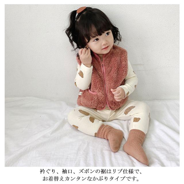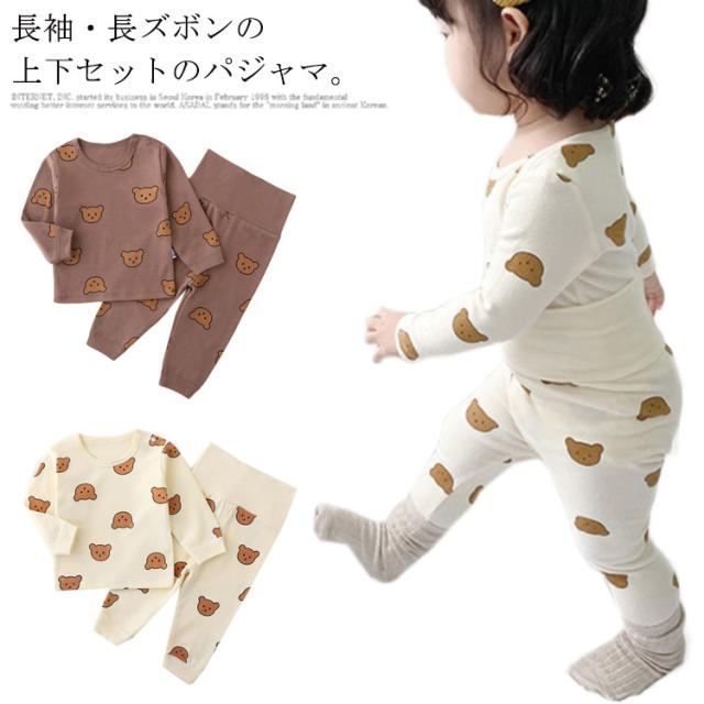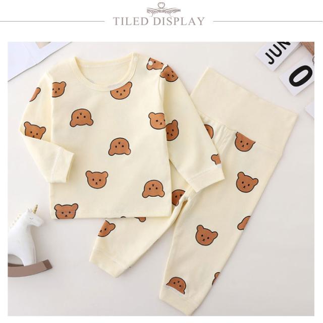 腹巻き付き 長袖 綿100% 熊柄 パジャマ キッズ ベビー セットアップ 熊 クマ 柄 総柄 上下 部屋着 腹巻き付きパジャマ 80cm 90cm 100cm 66cm 男の子 子供 キッズ ベビー