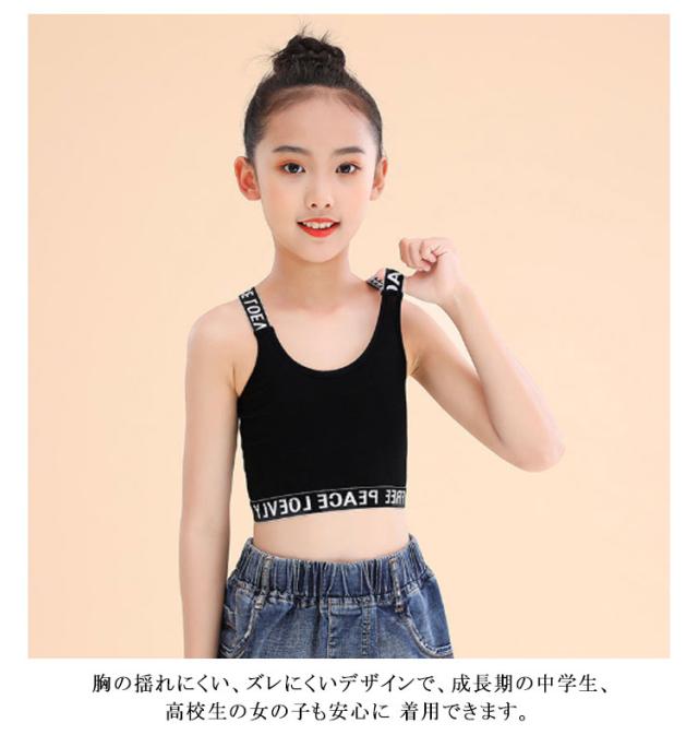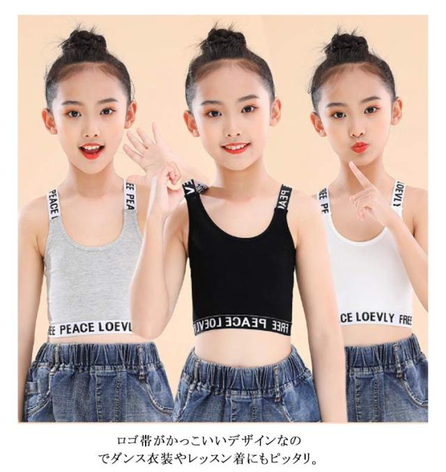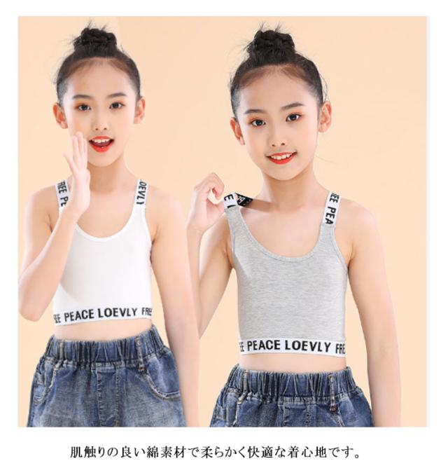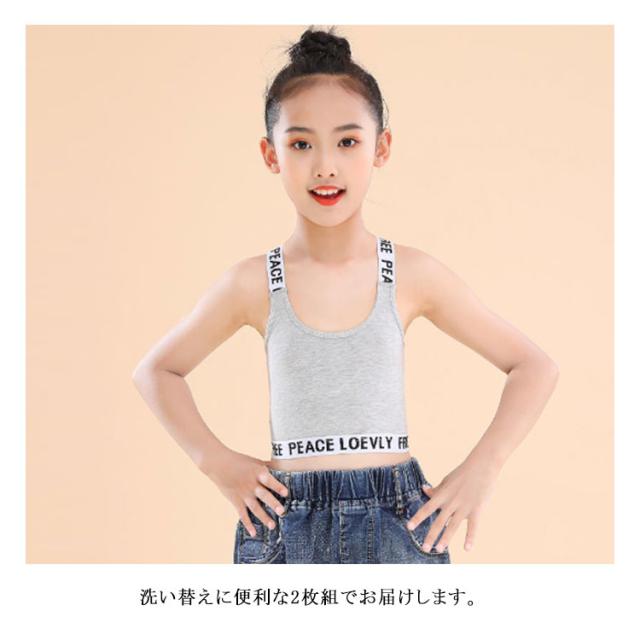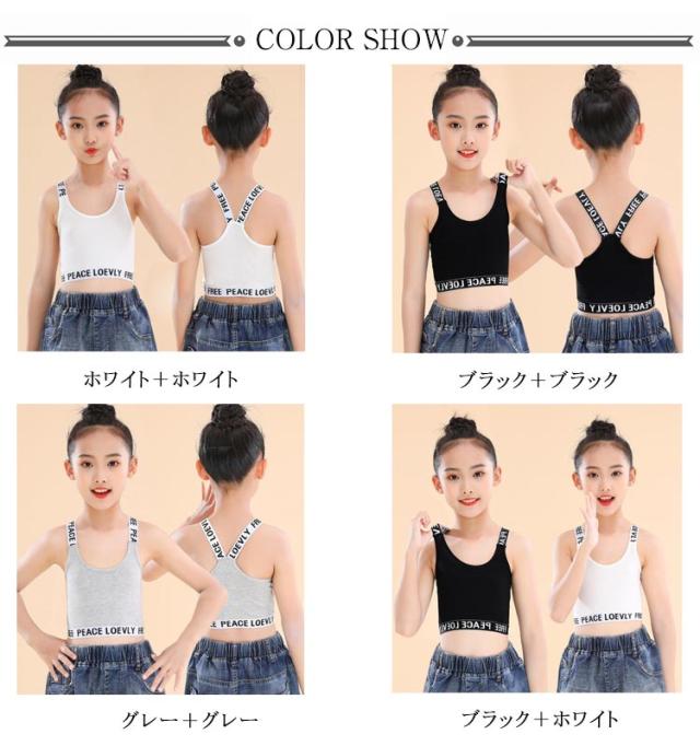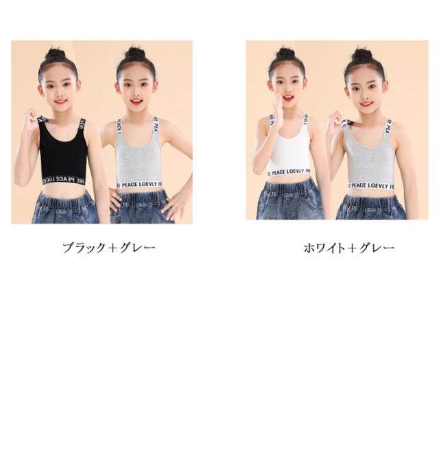 キッズ タンクトップ 2枚セット ジュニアブラ Y字 女の子 ダンス ハーフトップ インナー へそ出し スポーツブラ 子供用 小学生 中学生 下着 英字 女子 ファーストブラ ガールズ 綿 ブラジャー ノンワイヤー コットン 肌着 シンプル 送料無料