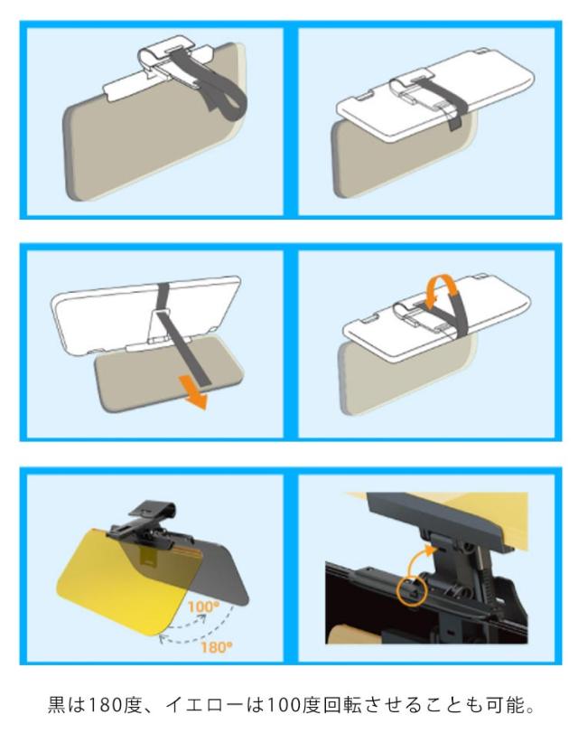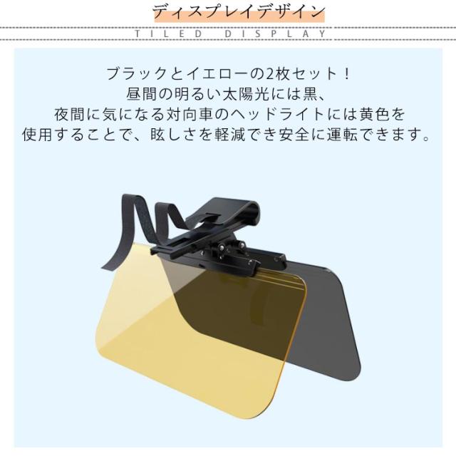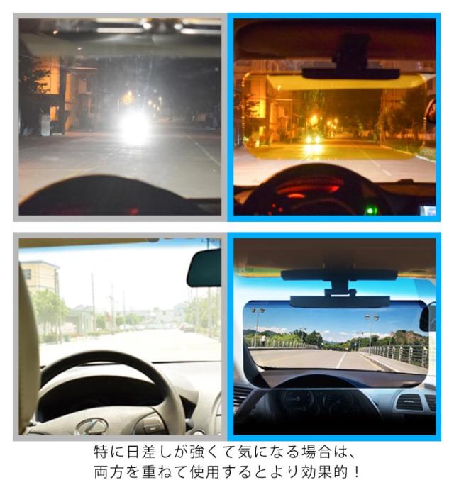 | 昼夜兼用の便利な2in1の車用サンバイザーです。 ブラックとイエローの2枚セット!昼間の明るい太陽光には黒、夜間に気になる対向車のヘッドライトには黄色を使用することで、眩しさを軽減でき安全に運転できます。 特に日差しが強くて気になる場合は、両方を重ねて使用するとより効果的! 見やすい位置まで簡単に調節できる!横方向に最大150mm移動でき、前後方向に最大70mm移動できます。 角度調節機能付き!黒は180度、イエローは100°回転させることも可能。 プレートに透過性があるため、視界をキープしながら快適に運転できるのでおすすめです! セダン、コンパクトカー、ミニバン、SUV、ワゴンなど幅広い車種に対応。 | |