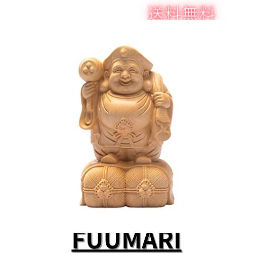 繁樓藝雕 七福神 大黒天 木彫り 桧木製 縁起物 玄関置物 開運招福 商売繁盛 無病息災 五穀豊穣 子孫繁栄 (高さ16cm×巾10cm×奥行7cm) (